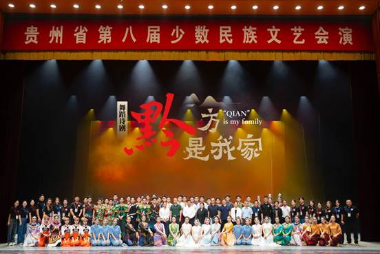 9月22日,贵州省第八届少数民族文艺会演期间,由公司代表团选送的舞蹈诗剧《黔方是我家》在贵州饭店国际会议中心隆重上演。此次会演由贵州省人民政府主办,贵州省民族宗教事务委员会、贵州省委宣传部、贵州省文化和旅游厅、贵州省广播电视局、贵阳市人民政府共同承办。公司100余名师生倾情演出。演出吸引了近千名观众现场观看。 剧照一 剧目《黔...